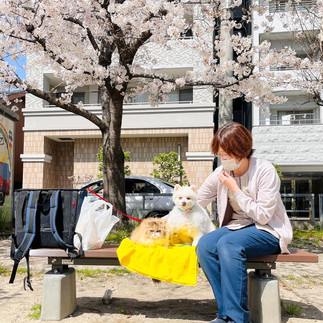 先日隣の公園で、メロたんとディーちゃんとお花見をしました🌸
